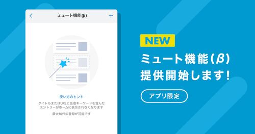 8月15日(月)にリリースされたはてなブックマークアプリの最新バージョン(iOSバージョン5.51.0、Androidバージョン5.57.0)より、ログイン時限定のβ版機能として 「ミュート機能」 がご利用いただけるようになりましたのでお知らせいたします。